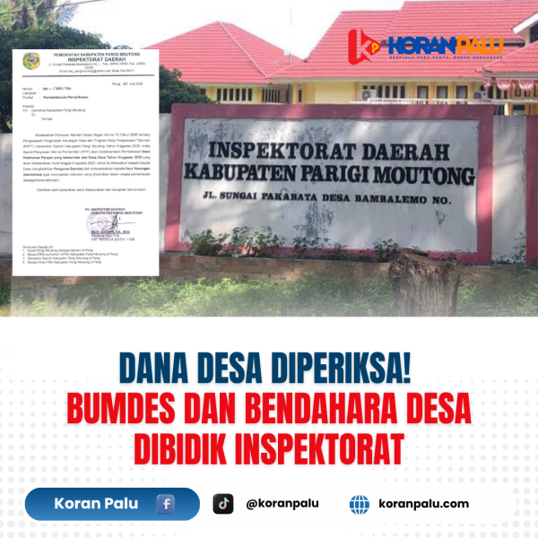 Parigi, KoranPalu.com — Kabar pemeriksaan dana desa oleh Inspektorat Daerah Kabupaten Parigi Moutong menyebar cepat dan menciptakan gelombang kegelisahan di kalangan aparat desa. Melalui surat resmi bernomor 700.1/388/Sek yang diterbitkan pada 25 Juli 2025, Inspektorat menyatakan akan melakukan pemeriksaan Dana Ketahanan Pangan dari Dana Desa Tahun Anggaran 2025, mulai 4 Agustus mendatang.
