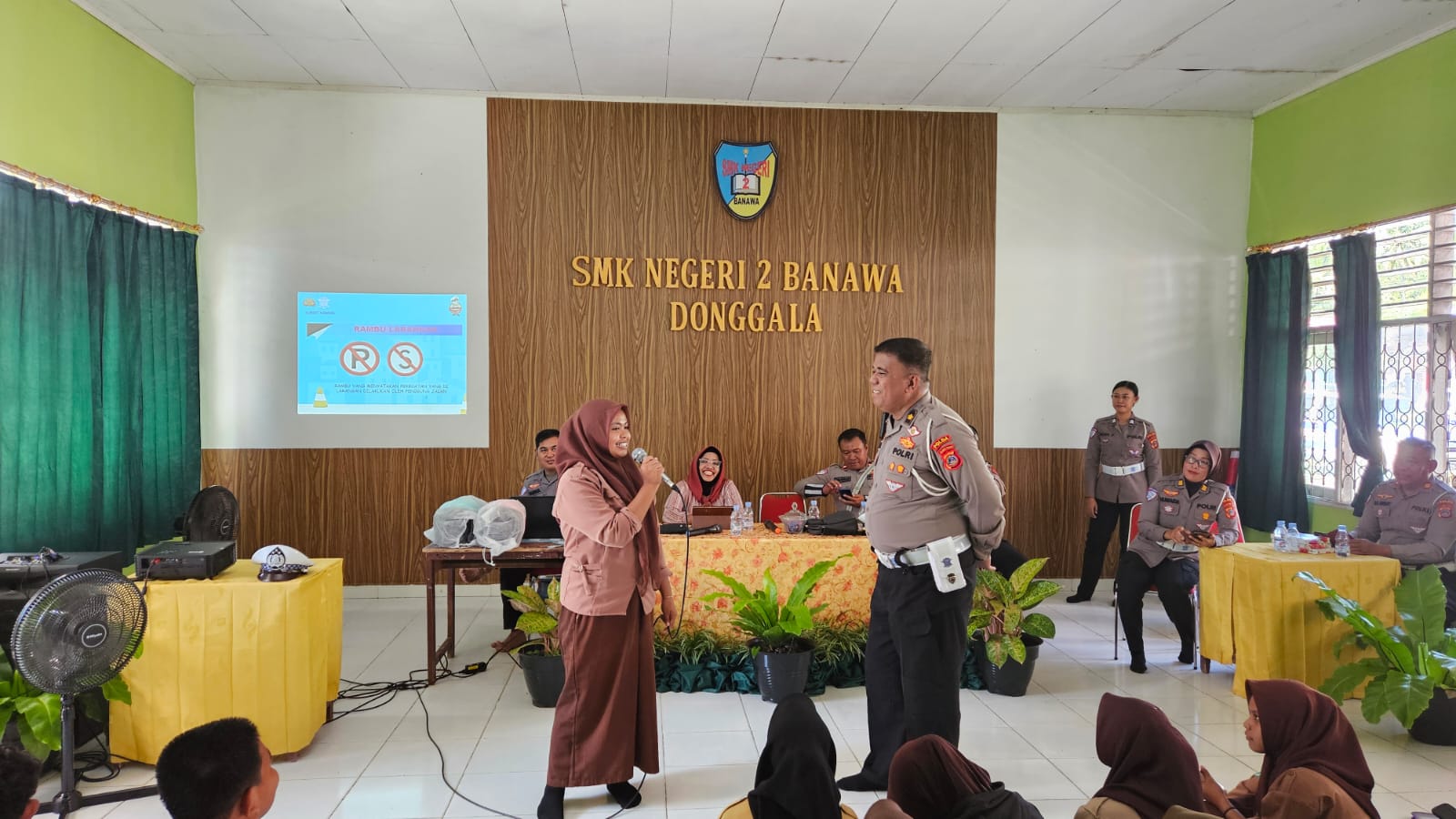 Kepala SMKN 2 Banawa, Risma, S.Pd., M.Pd., menyambut baik kegiatan ini dan berharap pelajar makin sadar akan pentingnya berlalu lintas yang baik.