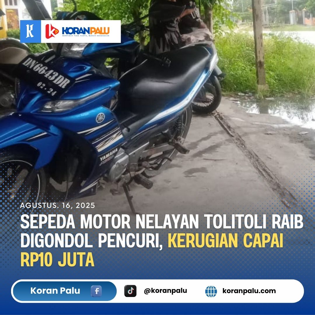 Koranpalu.com | Tolitoli – Aksi pencurian sepeda motor kembali terjadi di Kabupaten Tolitoli. Seorang nelayan bernama Ramaldya (23), warga Jalan Wolter Monginsidi, Kelurahan Baolan, kehilangan sepeda motornya pada Sabtu pagi, 16 Agustus 2025.