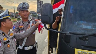 Peringati HUT RI ke-80, Polres Ogan Ilir Gelar Aksi Humanis Pemasangan Bendera Merah Putih di Kendaraan
